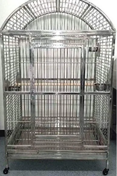 We believe that all parrots deserve the largest cage possible. Round cages are not appropriate for any parrot. Parrots should only be housed in environments that give them lots of room for flapping and foraging; room for a wide variety of perches (cloth, wood, rope, etc.); multiple feed dishes to encourage activity and natural foraging instincts; bar spacing that is an appropriate size; and they should receive plenty of time outside the cage.